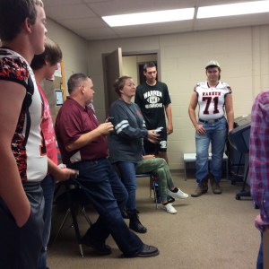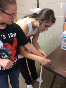 Pictures of us talking about the process. Pictures of the girls on our team preparing to measure Blake’s arm and wrist.