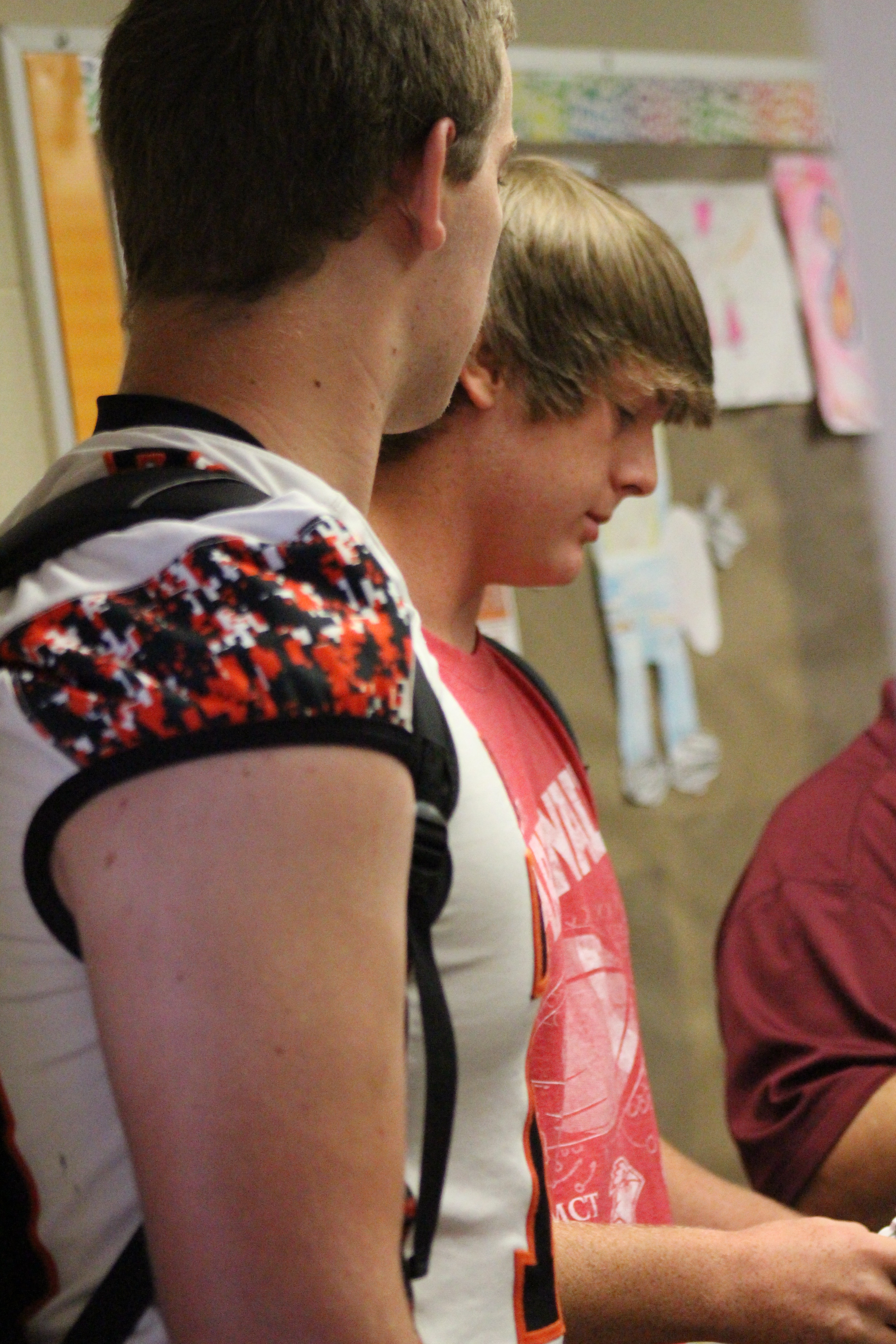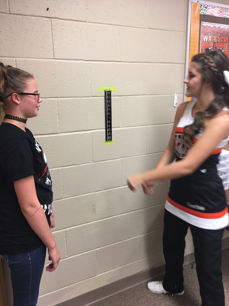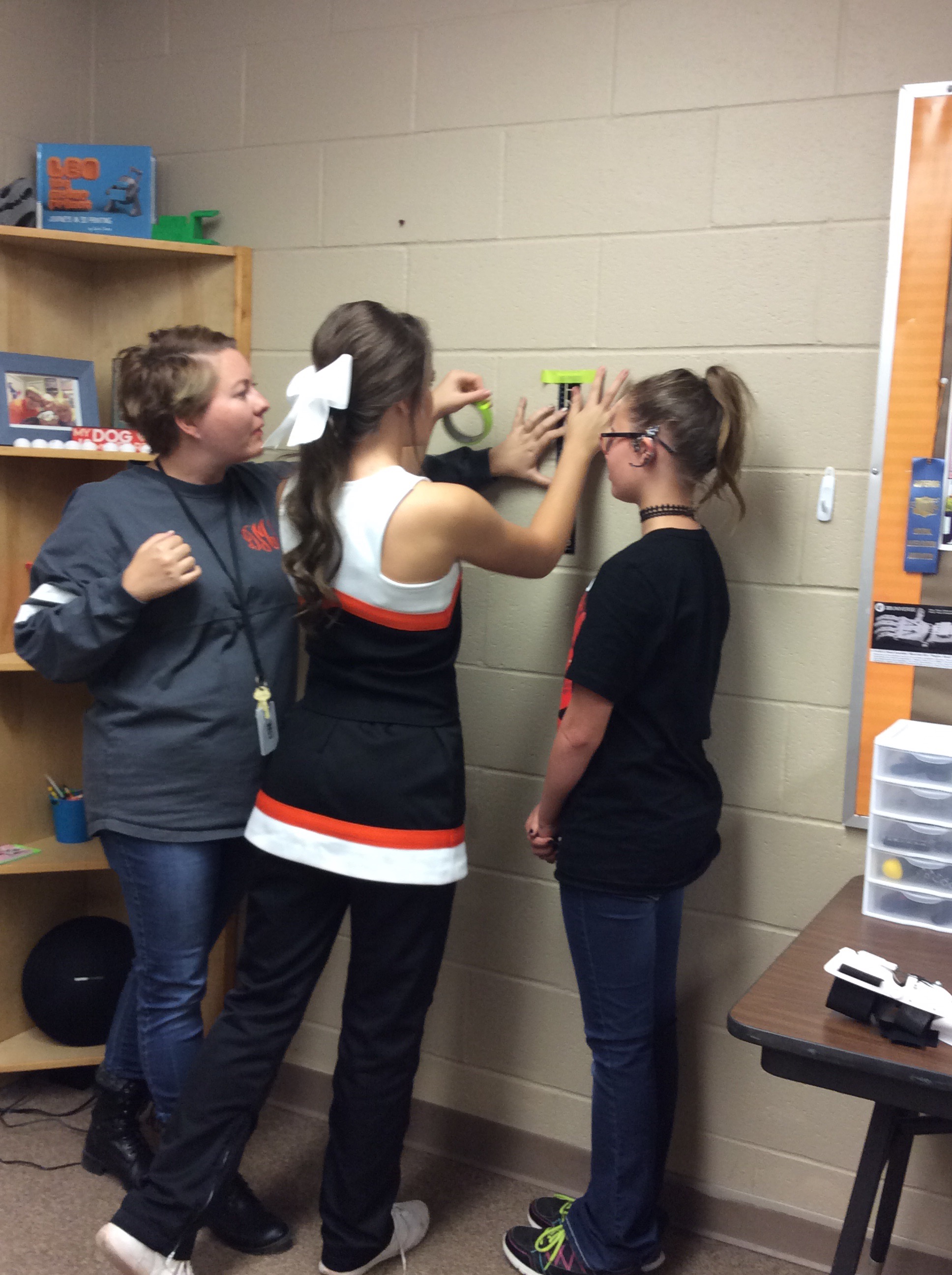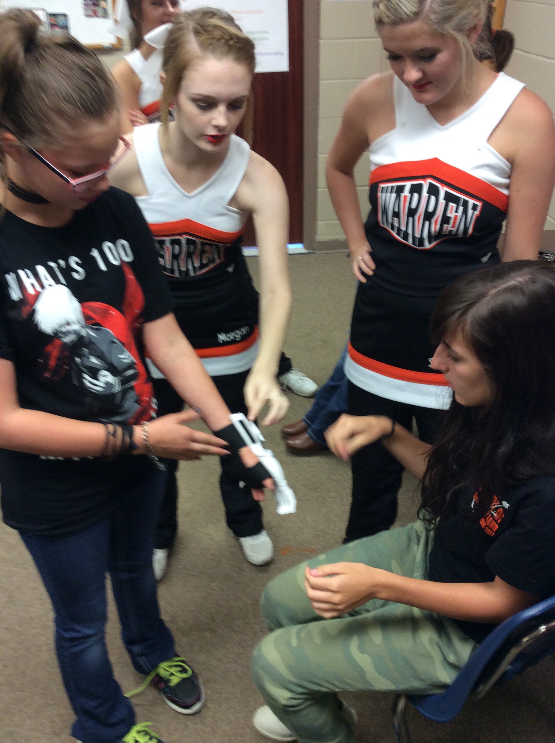 Pictures of us talking about the process. Pictures of the girls on our team preparing to measure Blake’s arm and wrist.