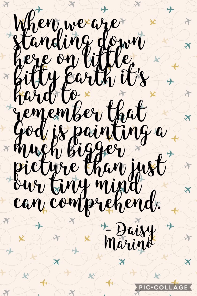 Sometimes God asks us to do what we perceive as crazy, radical, even scary. When we are standing down here on little, bitty Earth it’s hard to remember that God is painting a much bigger picture than just our tiny mind can comprehend.