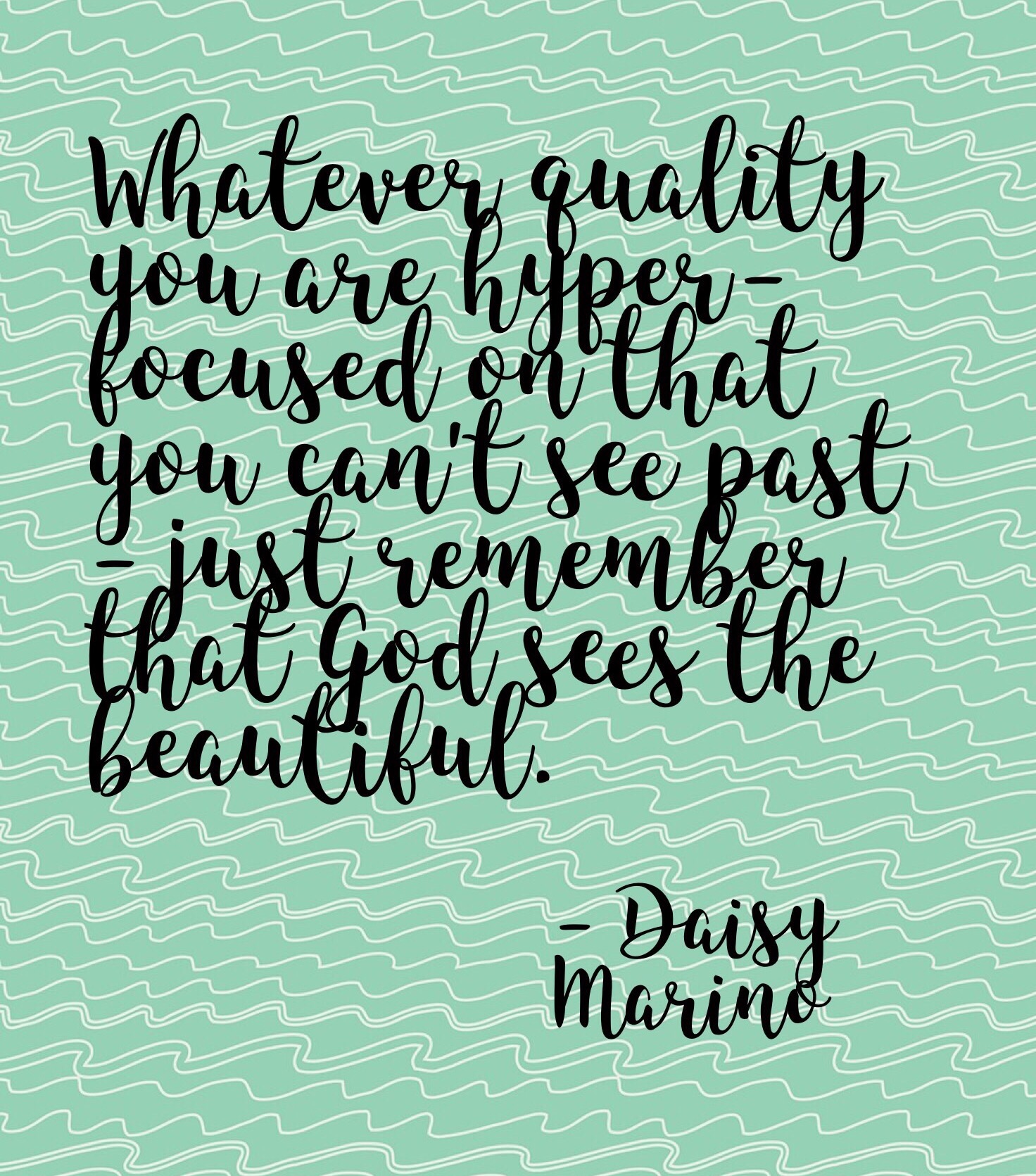 Whatever quality you are hyper-focused on that you can’t see past – just remember that God sees the beautiful. God can take the bad and use it for good. God thinks you’re beautiful. After all, He did create you.