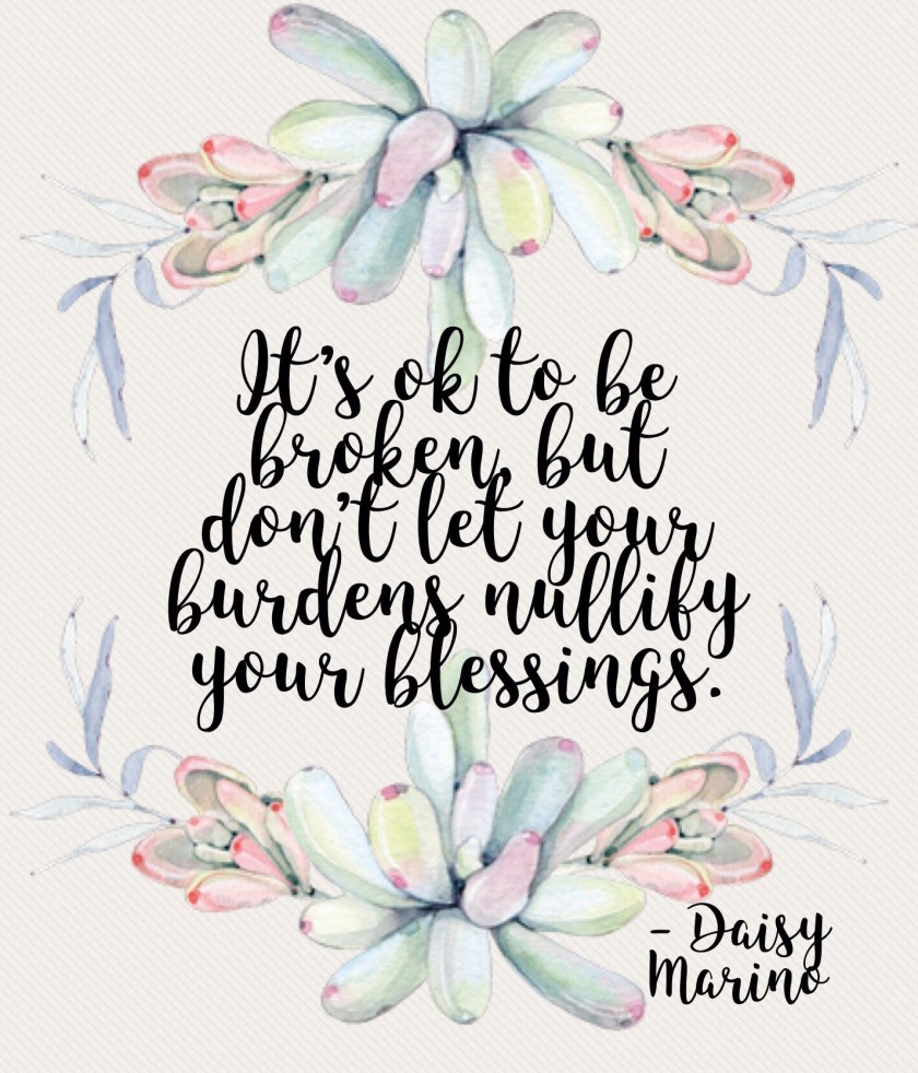 It’s ok to be broken, but don’t let your burdens nullify your blessings. Life gets tough, but God is still on the throne – and He is a good, good God.