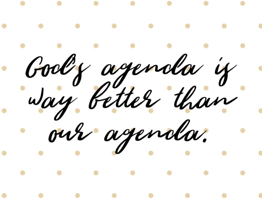 God’s agenda is way better than our agenda. God’s message is way better than our message.
