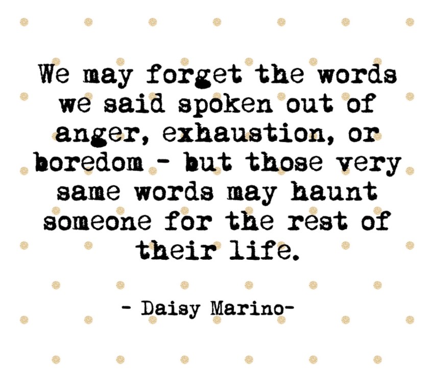 Flippant words tumbling out of our mouth like clowns in a circus car essentially do more damage than we could ever possibly imagine. We may forget the words we said spoken out of anger, exhaustion, or boredom – but those very same words may haunt someone for the rest of their life.