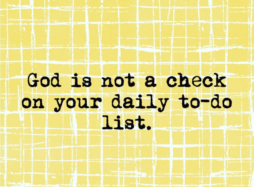Don’t let God become a checklist. Let God be the only thing on your list – and everything else will just fall into place.