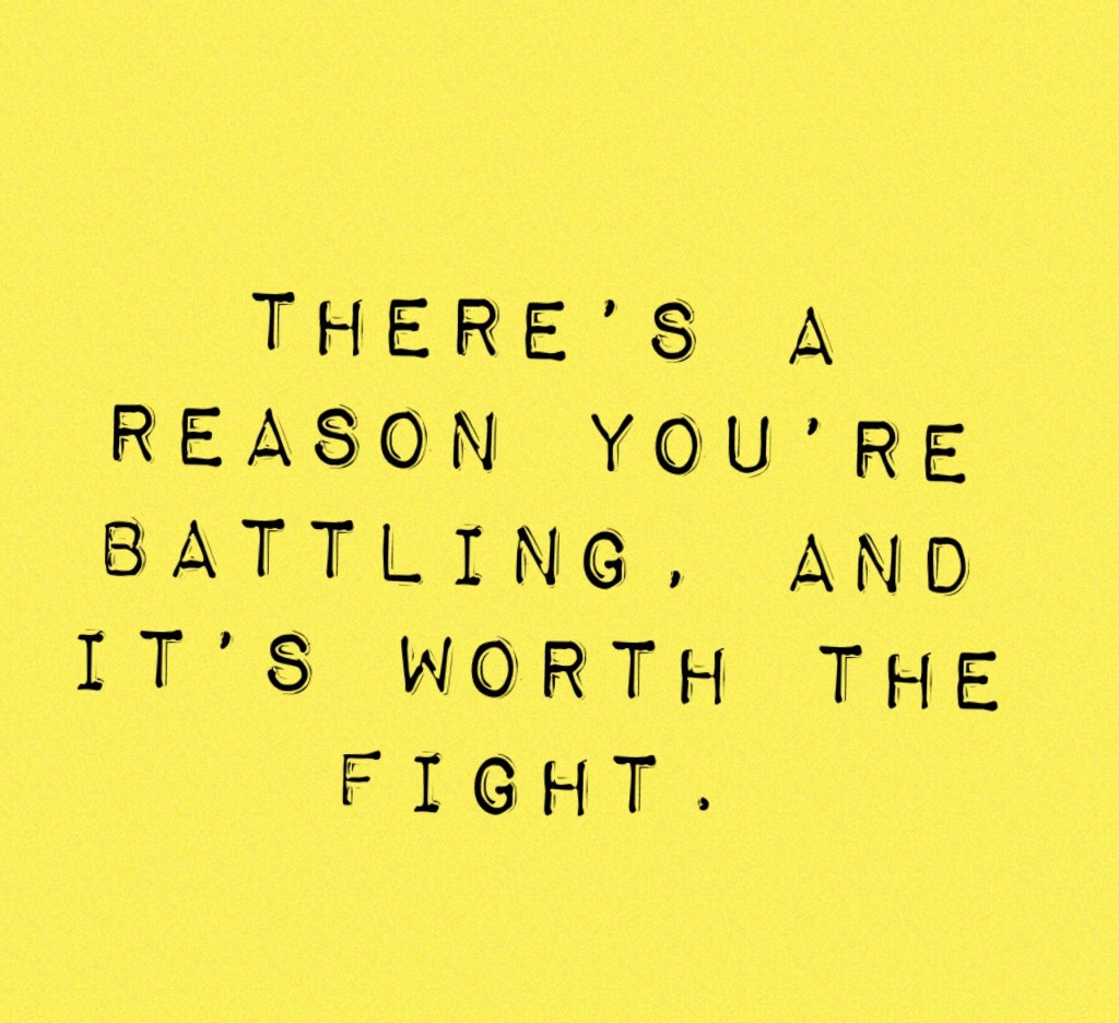But whatever you do, do NOT give up. There’s a reason you’re battling, and that reason is worth the fight.