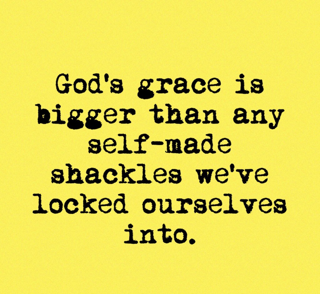 I want to be free. God wants me to be free. God wants you to be free. He doesn’t want us bound up by self-made shackles. God has the key, and that key is His grace.