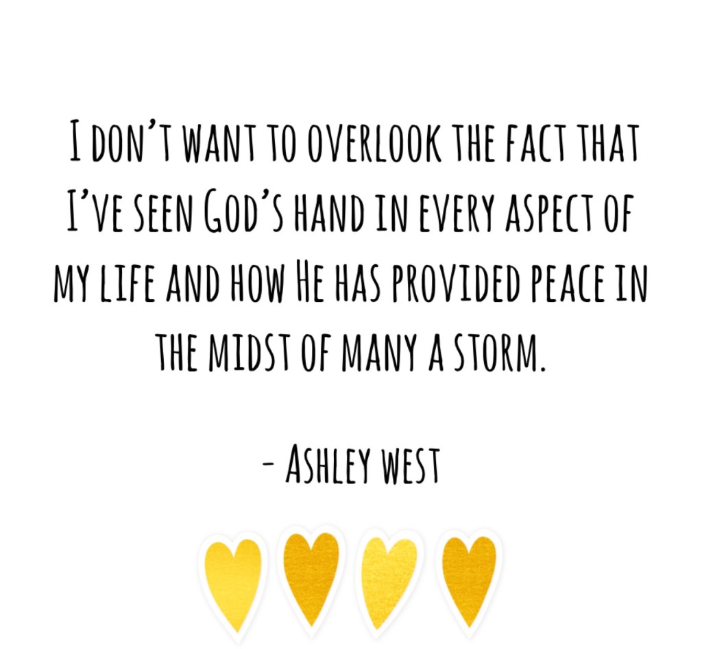 I don’t want to overlook the fact that I’ve seen God’s hand in every aspect of my life and how He has provided peace in the midst of many a storm. I want to always have a spirit of thankfulness. It’s unsettling for me to think about what life would be without Jesus. I’m so thankful for his unfailing, steadfast love.