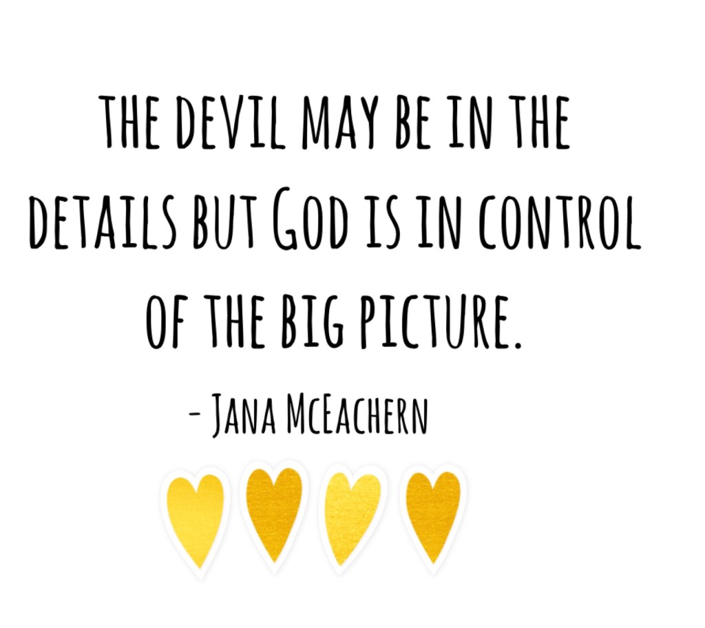 The devil may be in the details, as my mom said, but God has the big picture. ALWAYS.