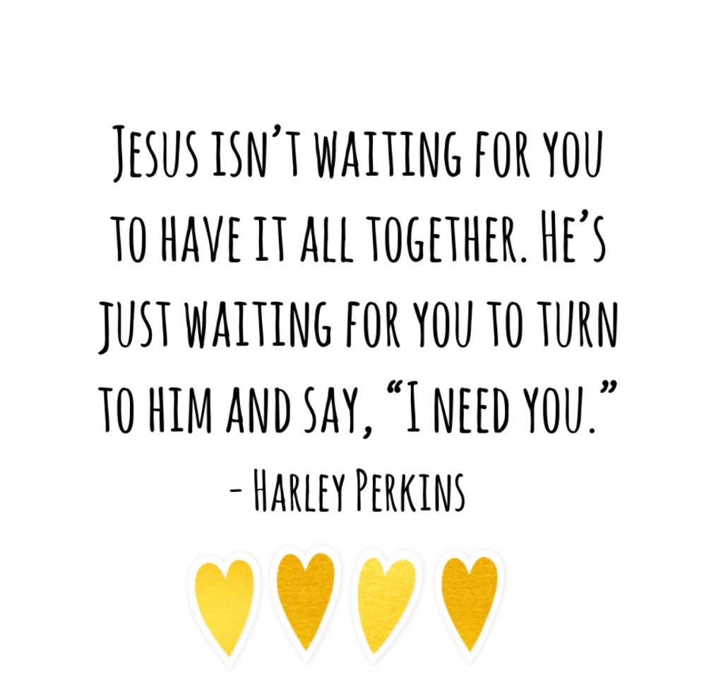Jesus isn’t waiting for you to have it all together. He’s just waiting for you to turn to him and say, “I need you.” In the presence of Jesus, you are loved more than you can imagine and you don’t have to have your life spit shined and polished.