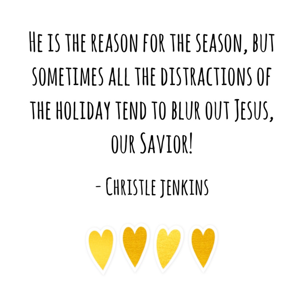 We stay busy decorating Christmas trees, shopping for gifts, and celebrating with family. When I think of the true meaning of Christmas and what we are celebrating, I think of God sending us His Son, Jesus. He is the reason for the season, but sometimes all the distractions of the holiday tend to blur out Jesus, our Savior!