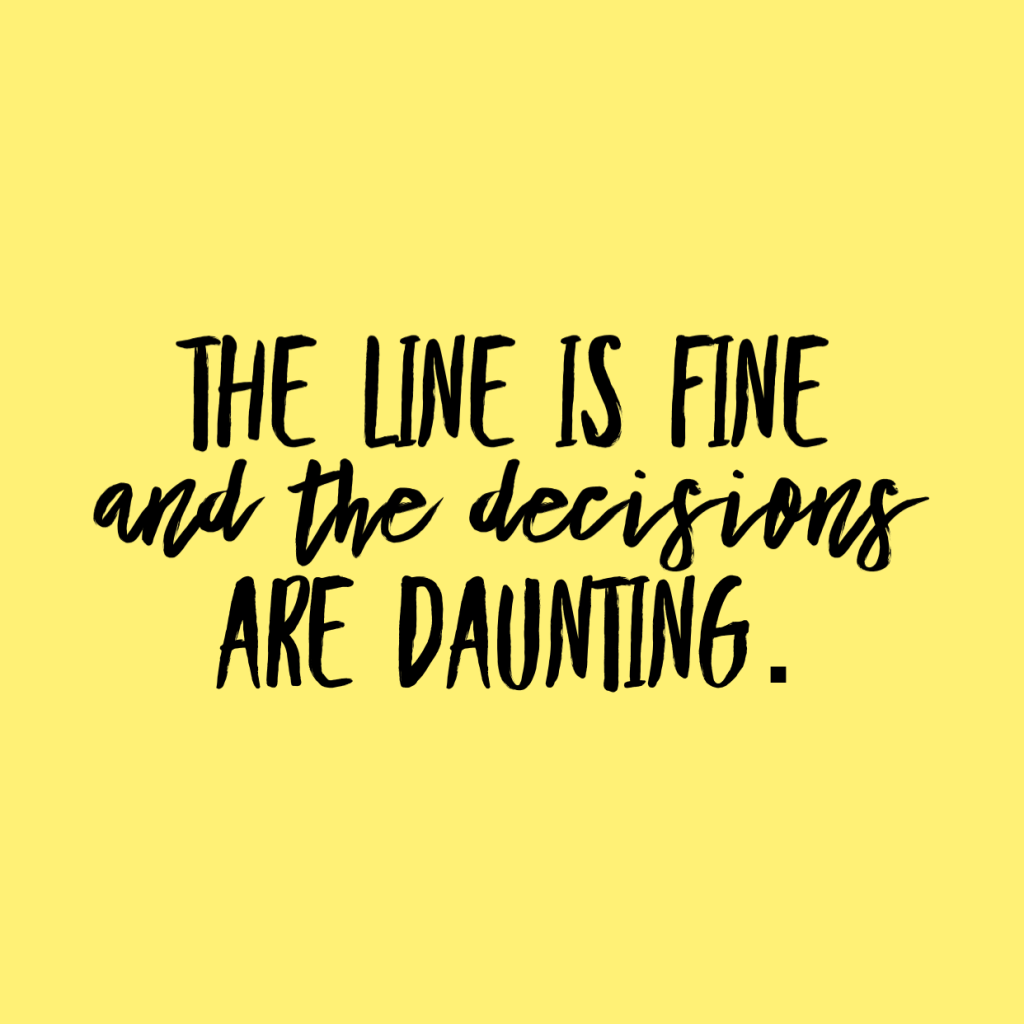 The line is fine, and the decisions are daunting. We want to keep life normal for our kids, but we don’t even know what normal is anymore.