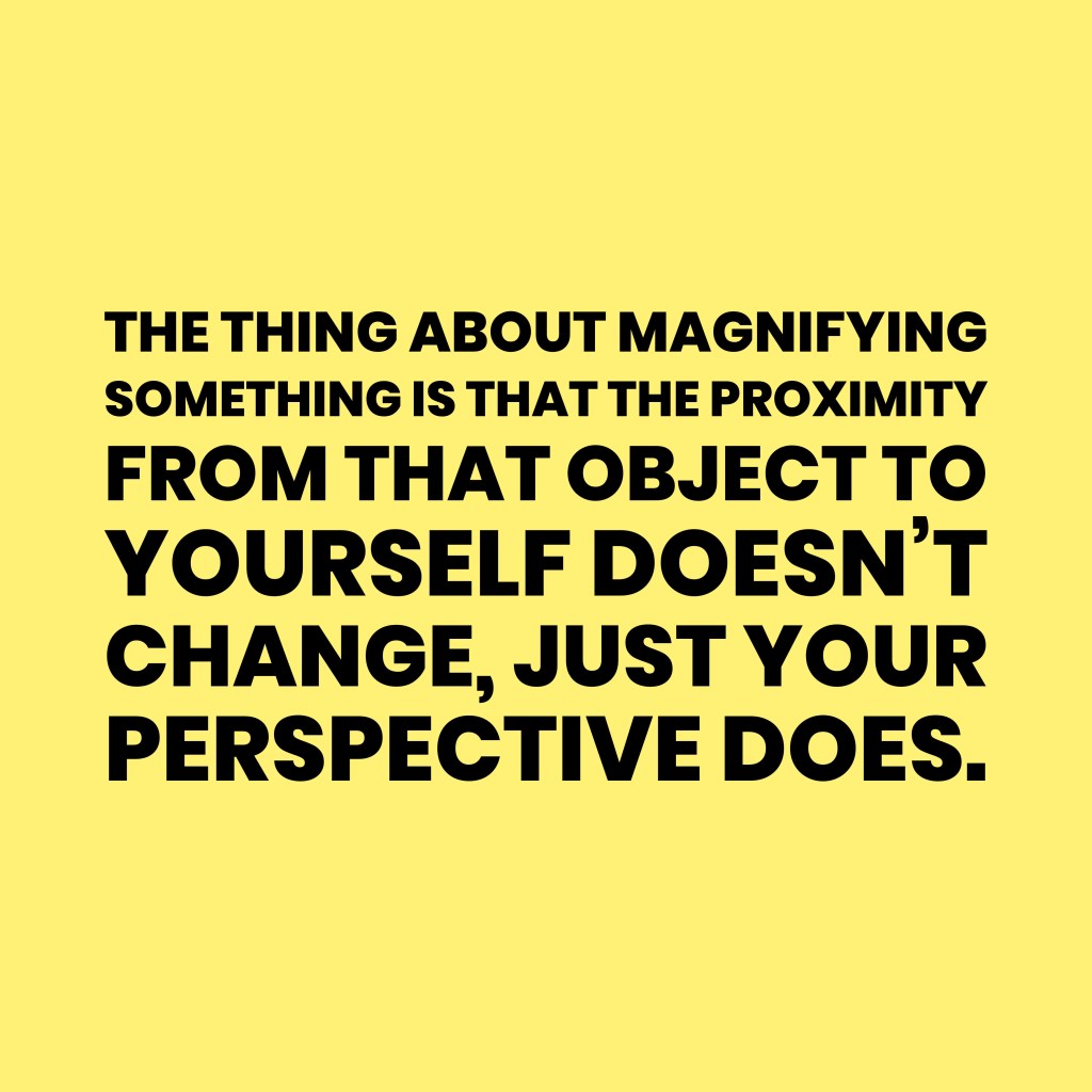 The thing about magnifying something is that the proximity from that object to yourself doesn’t change, just your perspective does.