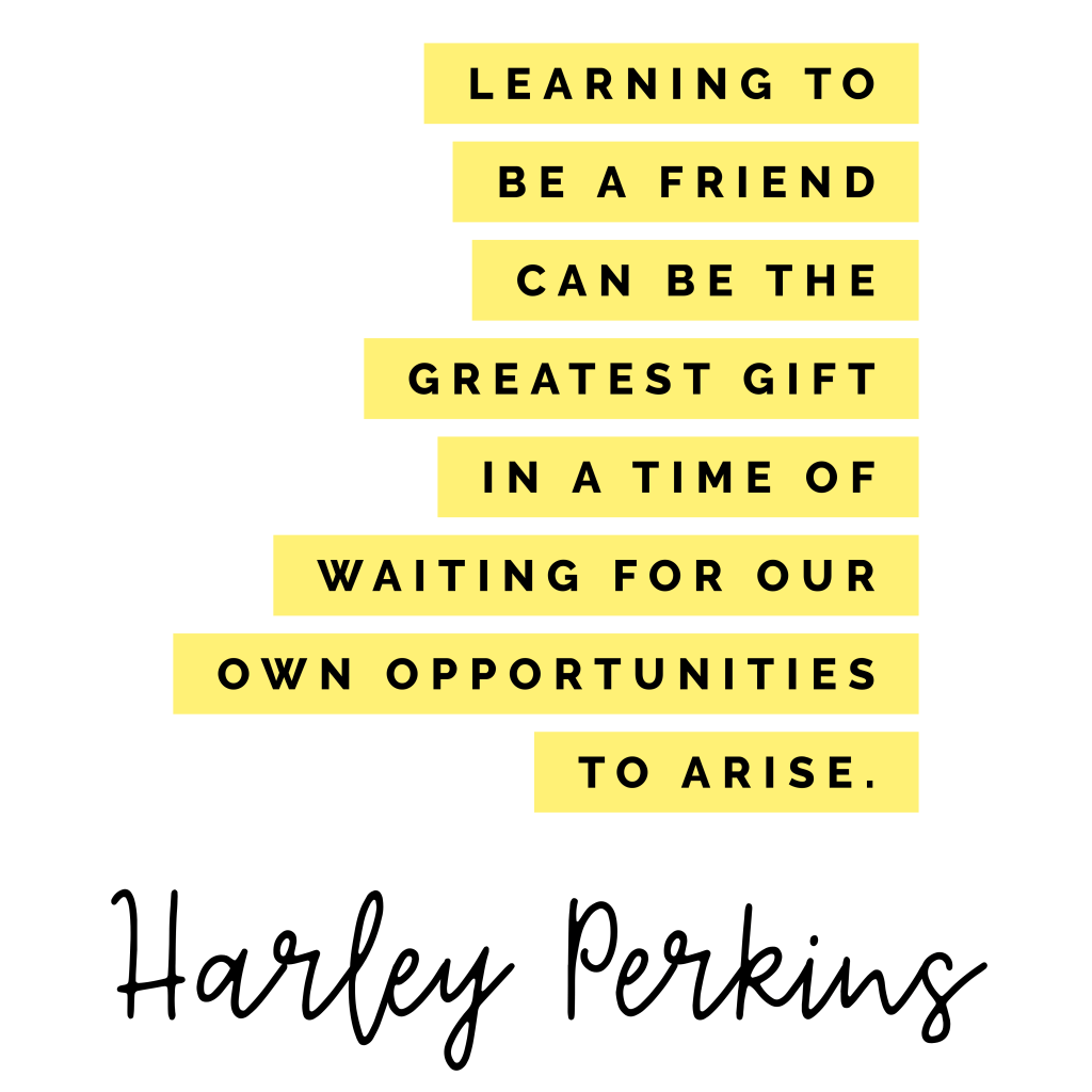 Learning to be a friend can be the greatest gift in a time of waiting for our own opportunities to arise. We can learn how Jesus deeply loved his disciples and was the best friend to all people.