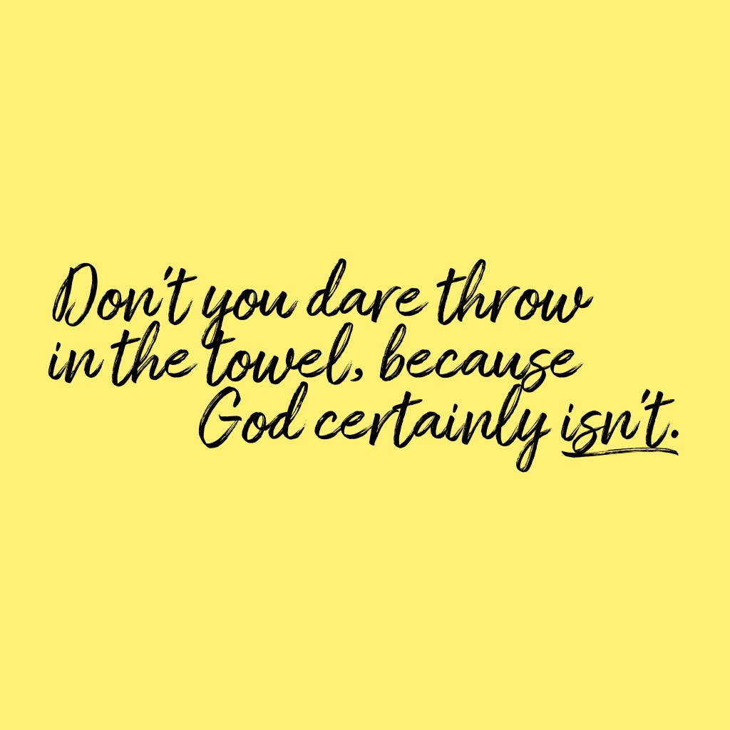 Y’all, don’t you dare throw in the towel, because God certainly isn’t.