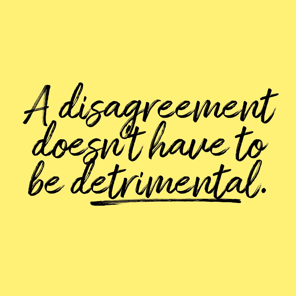 We can disagree without totally disengaging. We can disagree without devastating relationships. A disagreement doesn’t have to be detrimental. It can simply be a disagreement.