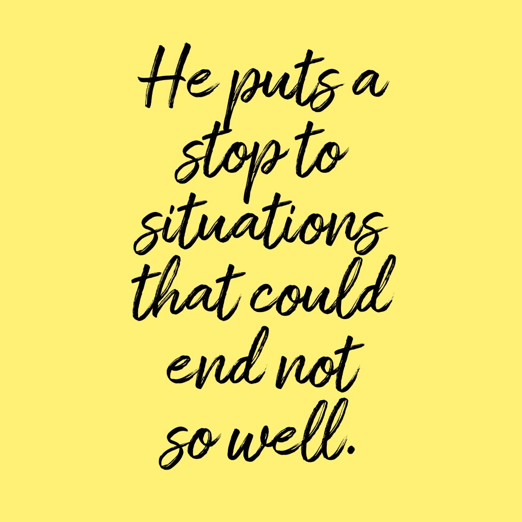 That’s what God does for His kiddos, too. He looks out for our best interest. He protects us from getting hurt. He puts a stop to situations that could end not so well.