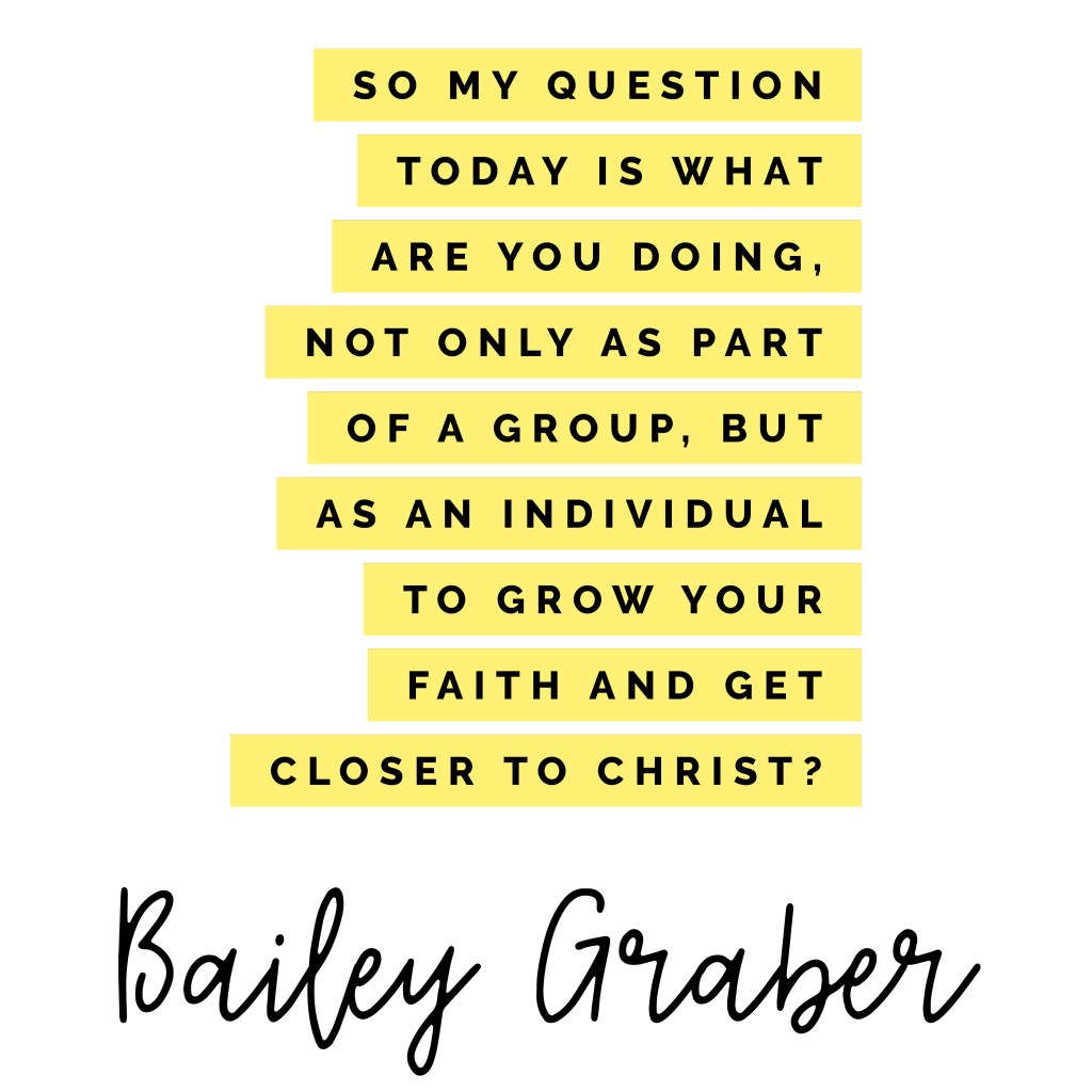 So my question today is what are you doing, not only as part of a group, but as an individual to grow your faith and get closer to Christ?