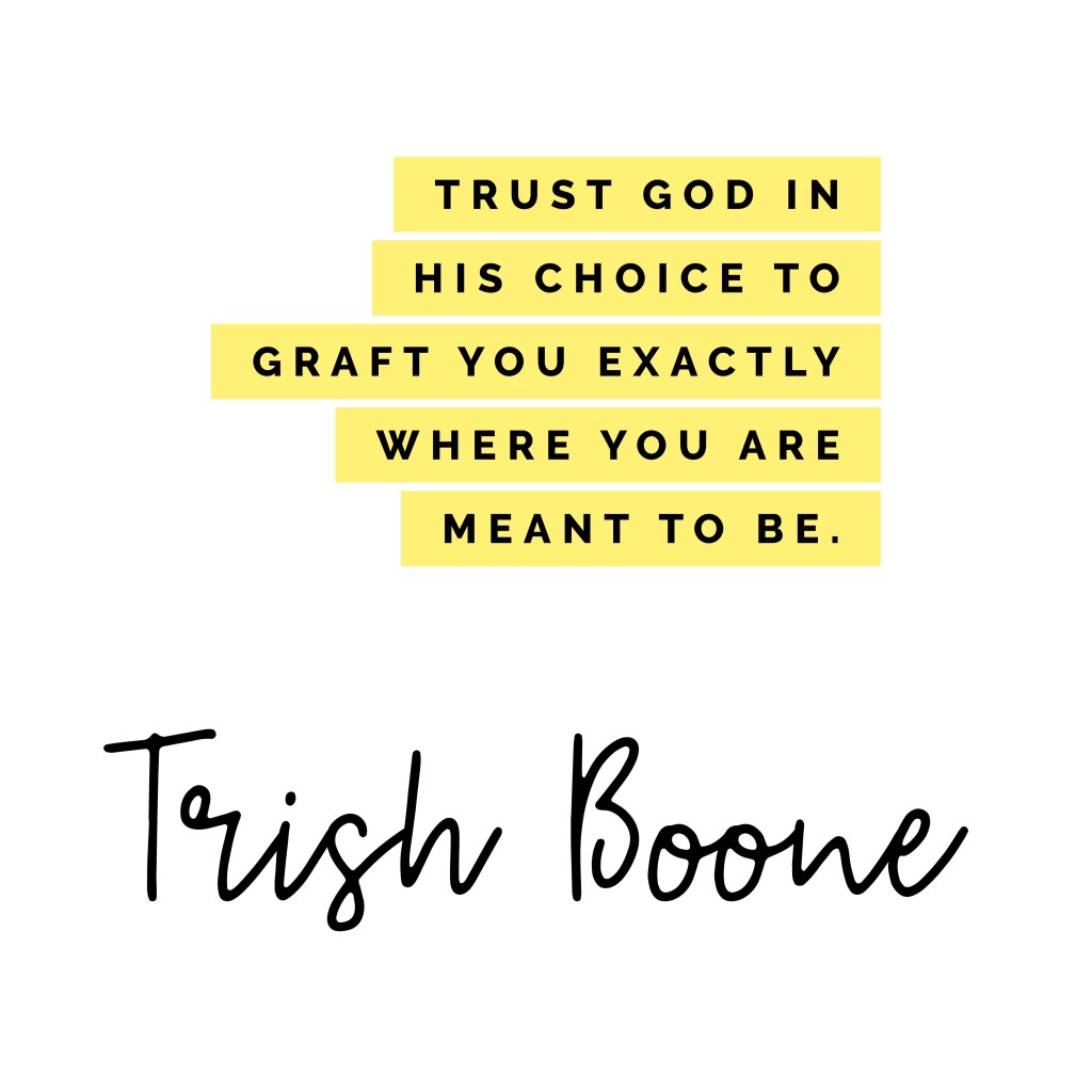 This is for sure exciting news for us that don’t seem to fit where the world makes us feel like we should!!! God has the ability to break us off from our current branch, then graft us right back into the new place that He has in store for us. This is all dependent on how much we trust God with knowing exactly where that is.