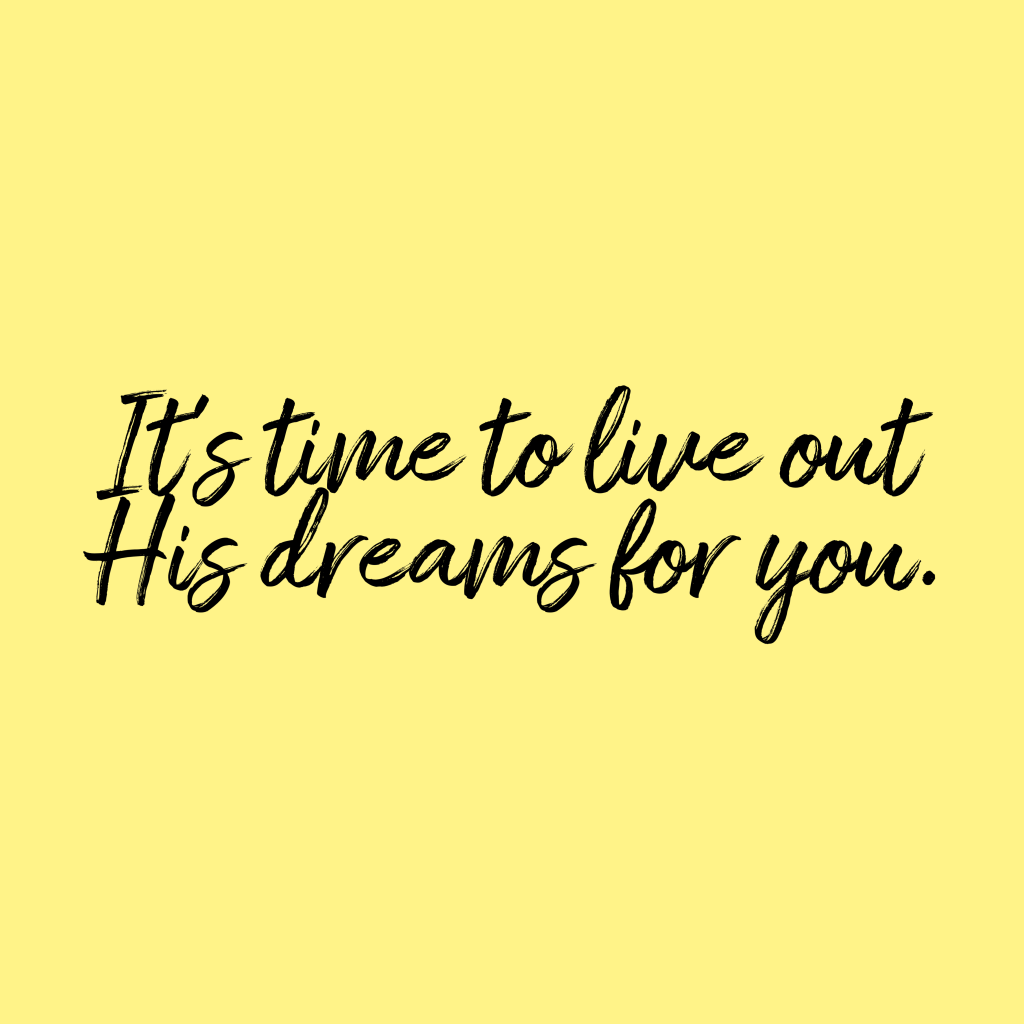 It’s time to live out the life you didn’t know you would. It’s time to live out His dreams for you.
