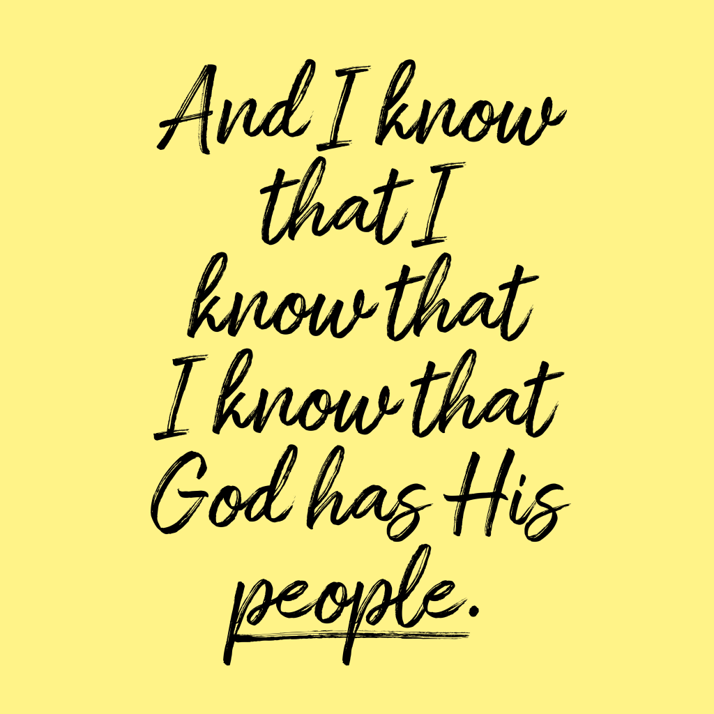 And I know that I know that I know that God has His people. I know that truth always wins. I know that that no weapon will prosper. Right? But I’m human.