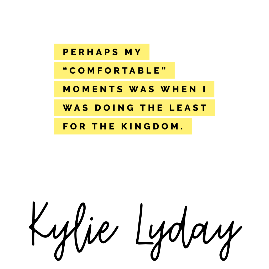 I have grown to learn comfortable is not where I want to go in life. Perhaps my “comfortable” moments was when I was doing the least for the Kingdom. That was scary.