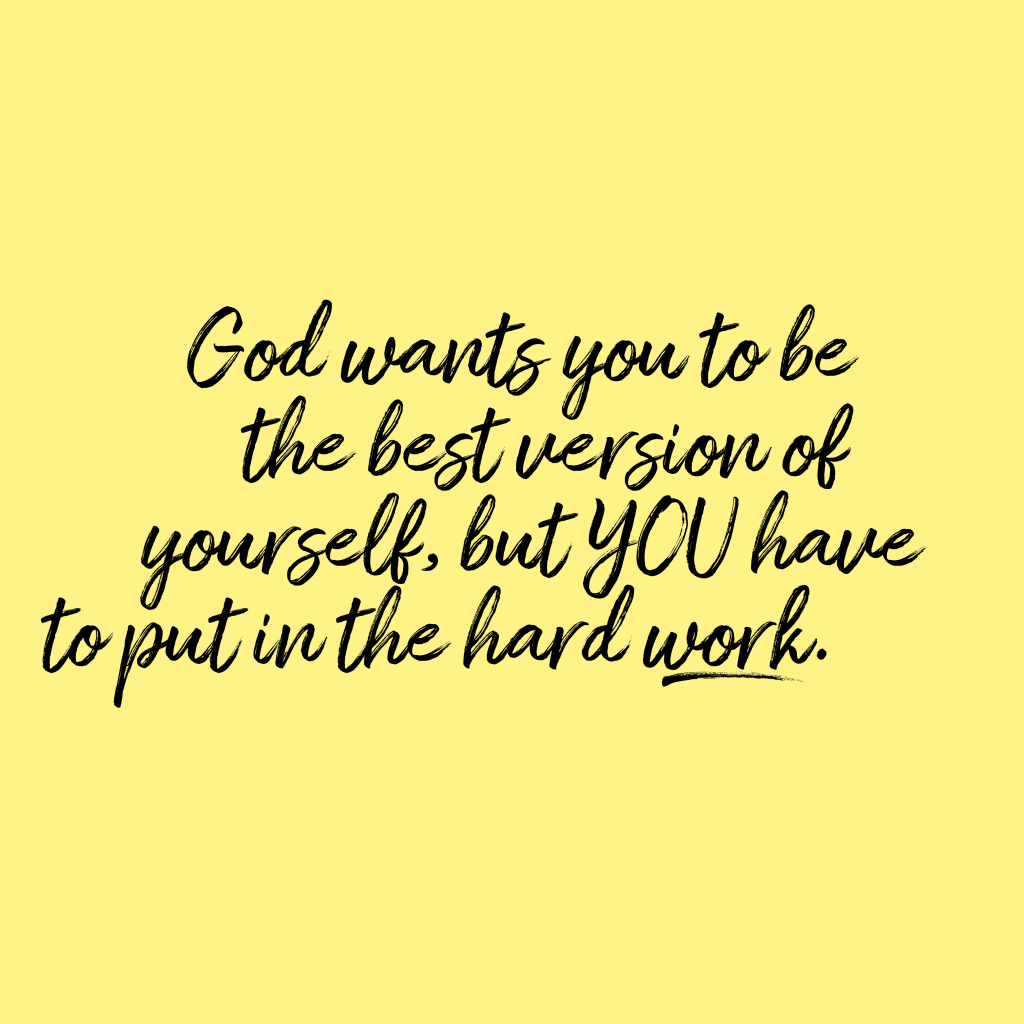 Give yourself a pep-talk, sister. God wants you to be the best version of yourself, but YOU have to put in the hard work.