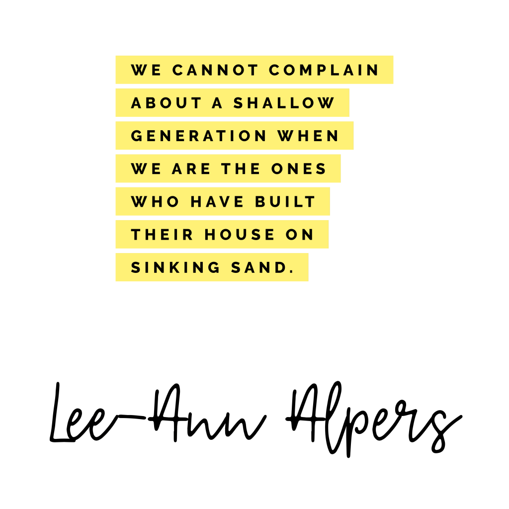 We cannot complain about a shallow generation when we are the ones who have built their house on sinking sand.