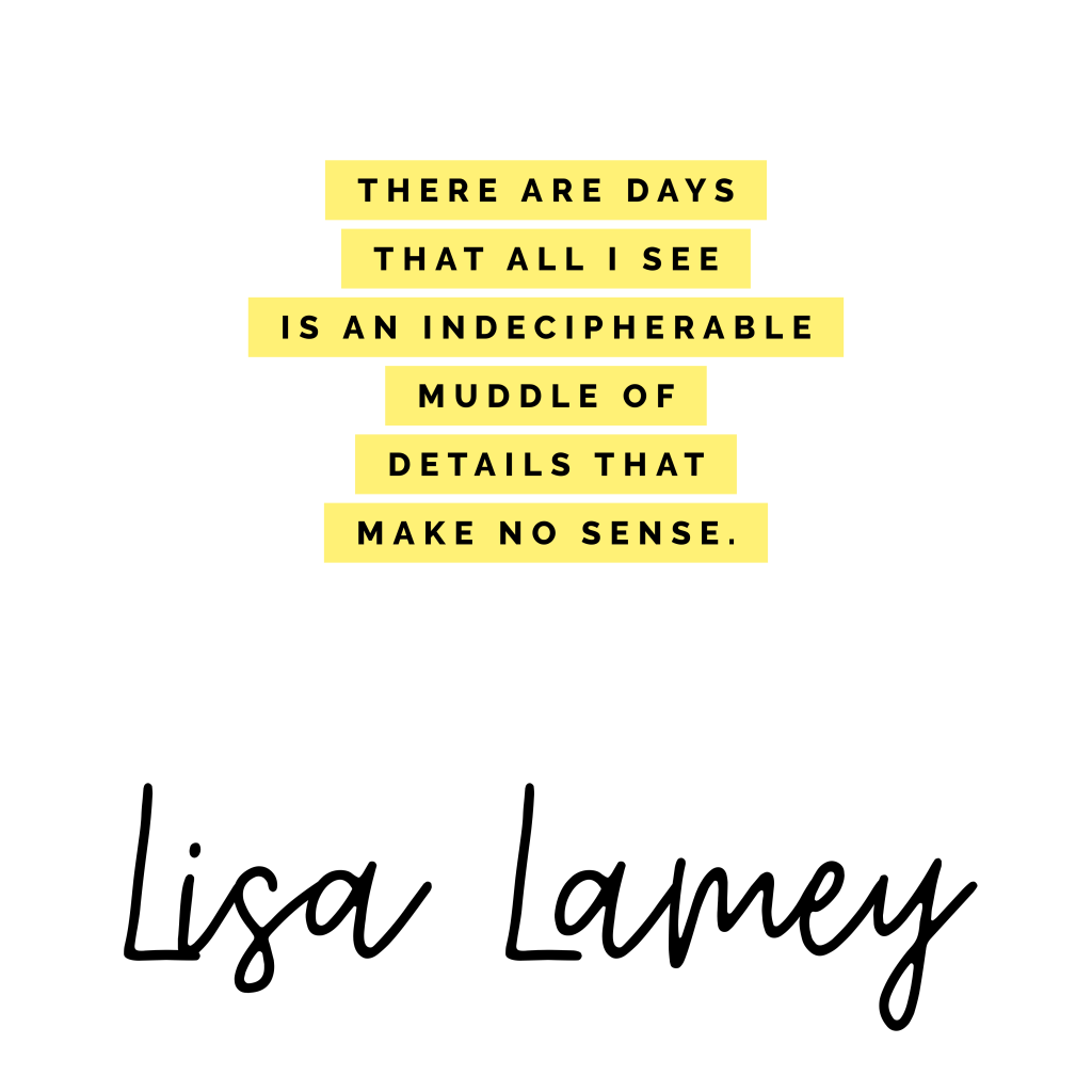 There are days that all I see is an indecipherable muddle of details that make no sense. These are the days when, instead of trying to figure it out, I recognize once again that I can’t. “My thoughts are nothing like your thoughts,” says the Lord. “And my ways are far beyond anything you could imagine. For just as the heavens are higher than the earth, so my ways are higher than your ways and my thoughts higher than your thoughts.” Isaiah 55:8-9 NLT