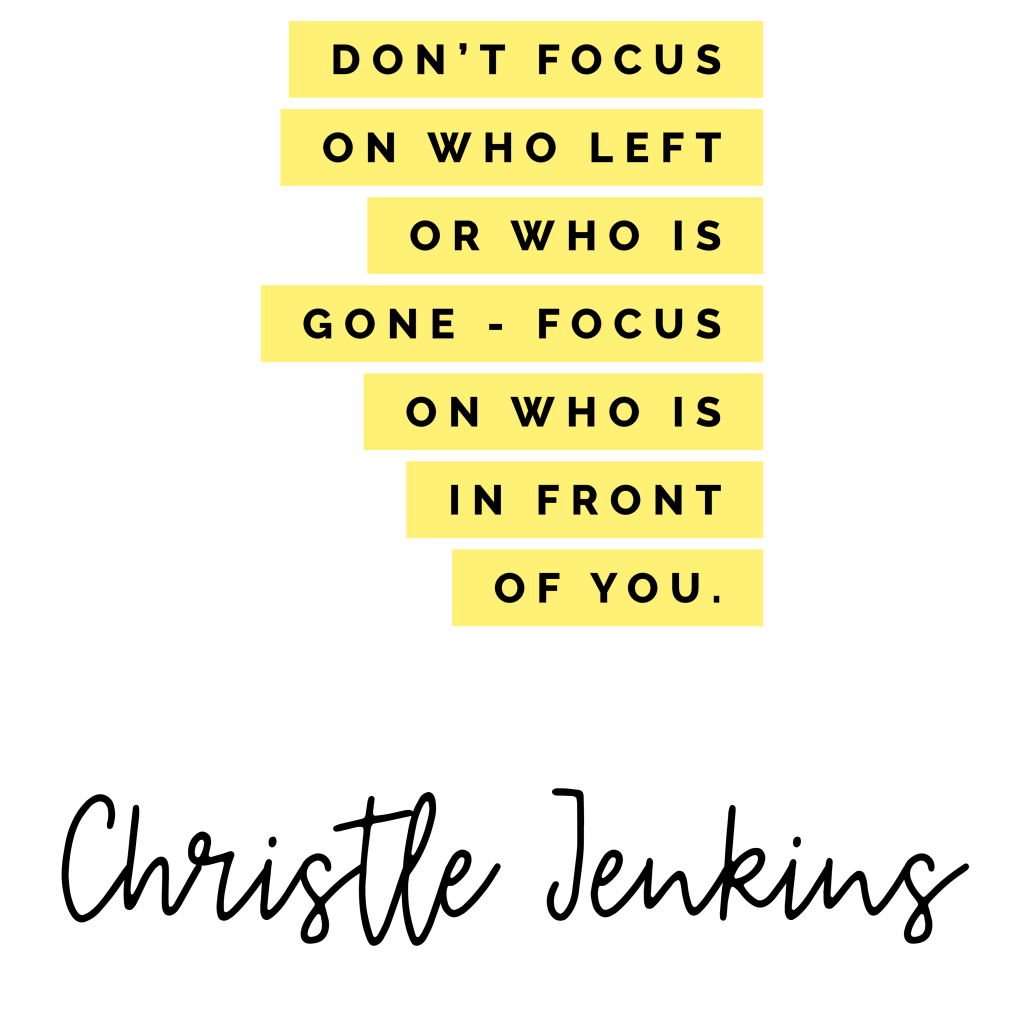 God has a job for each and every one of us to fulfill. He has a purpose for every single one of us and for everyone that enters our lives. People aren’t always meant to stay in our lives forever. Don’t focus on who left or who is gone – focus on who is in front of you.
