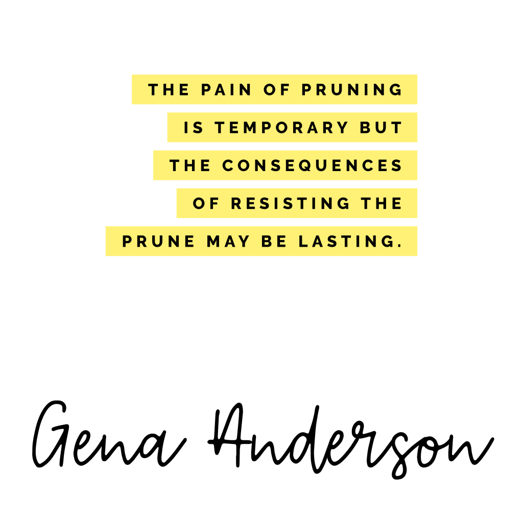In John 15:2 Jesus says God prunes his branches that are fruit-bearing so they can bear even more fruit. We are the branches in this metaphor, sprouting off the vine of Jesus. We don’t always understand the purpose of pruning, but we have to trust the gardener. His perspective is far and wide when we see only our present circumstances. And he is a good, skilled gardener.