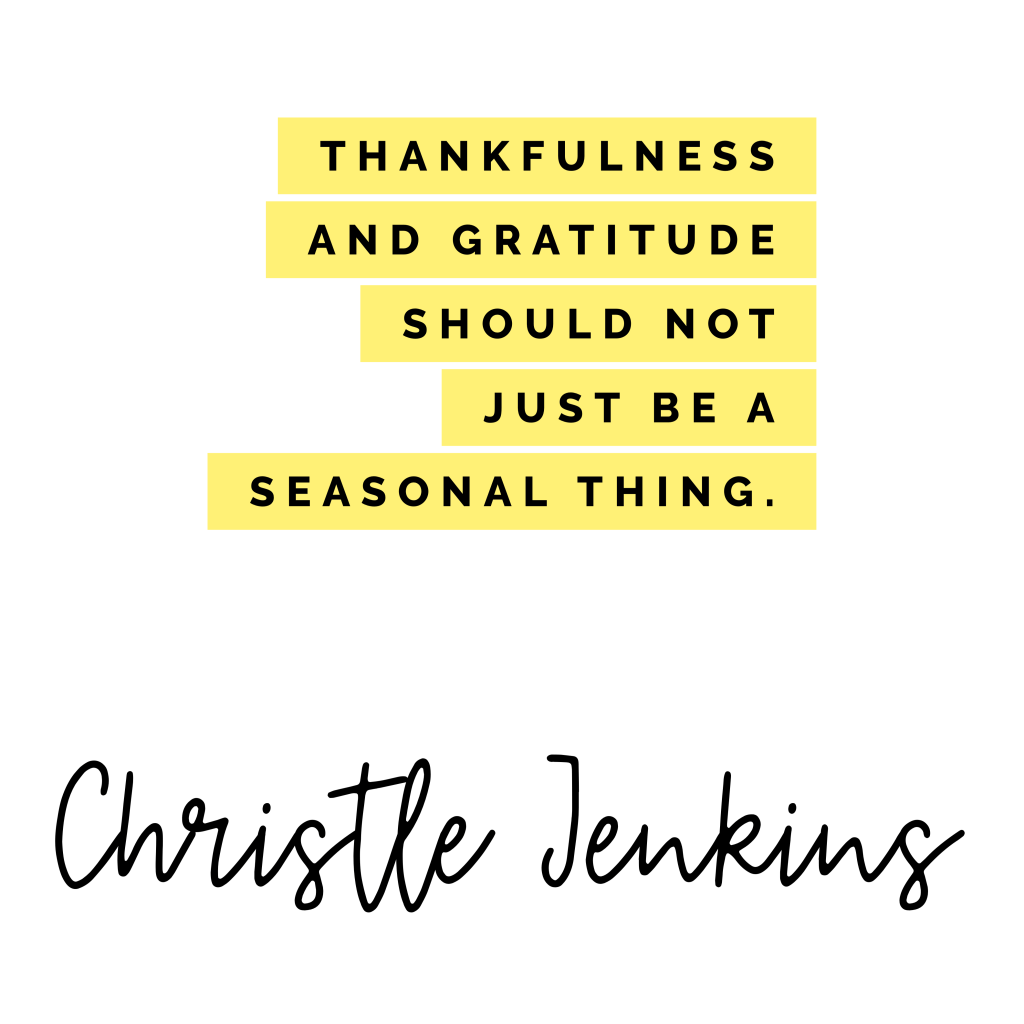 November is the month where most people concentrate on giving thanks all the way up to Thanksgiving Day. On Thanksgiving Day there is a high possibility most people go around the table and say what they are thankful or grateful for or if nothing else an attitude of thankfulness is present in some way or another. Today is the day after Thanksgiving and we are nearing the end of the month of “thankfulness”. We are getting ready to shift our minds to the busyness of Christmas and all that comes with it, but let’s all just stop now and remember our thankfulness and gratitude should not just be a seasonal thing but a part of our daily lives.