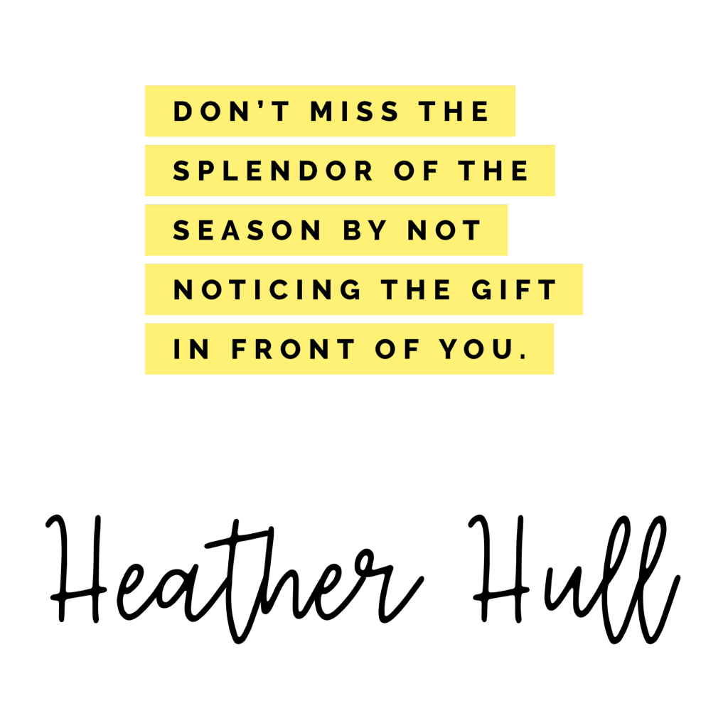 Don’t miss the splendor of the season by not noticing the gift in front of you. Jesus was born humbly in a stable, he lived a perfect life, and he died a violent death on a cross so that all who ask him to be Lord of their lives might be saved. Don’t think the gift is too grand or too special for you to accept. Just see the gift of Jesus and take it.
