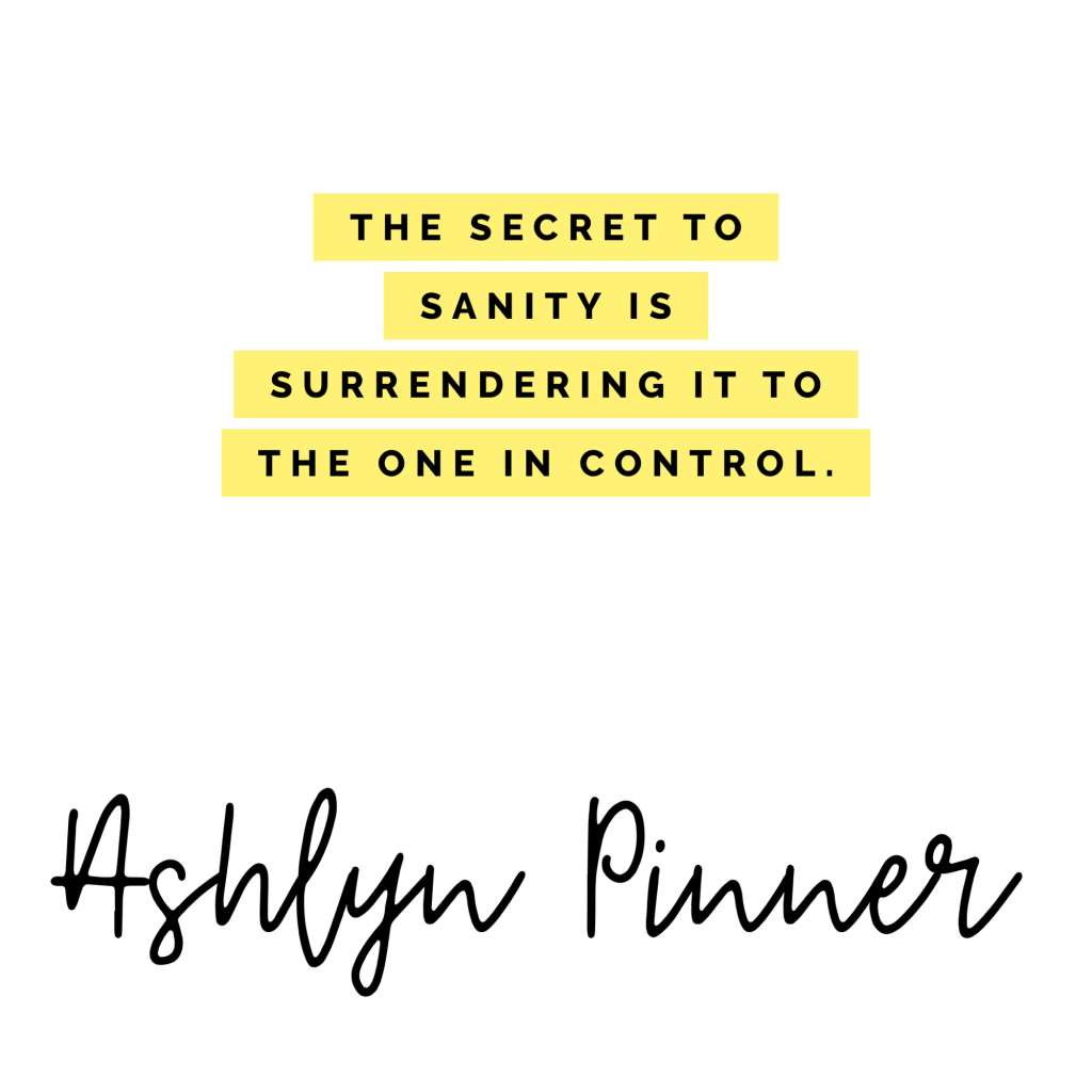 The secret to sanity isn’t having everything under control. The secret to sanity is surrendering it to the One in control.