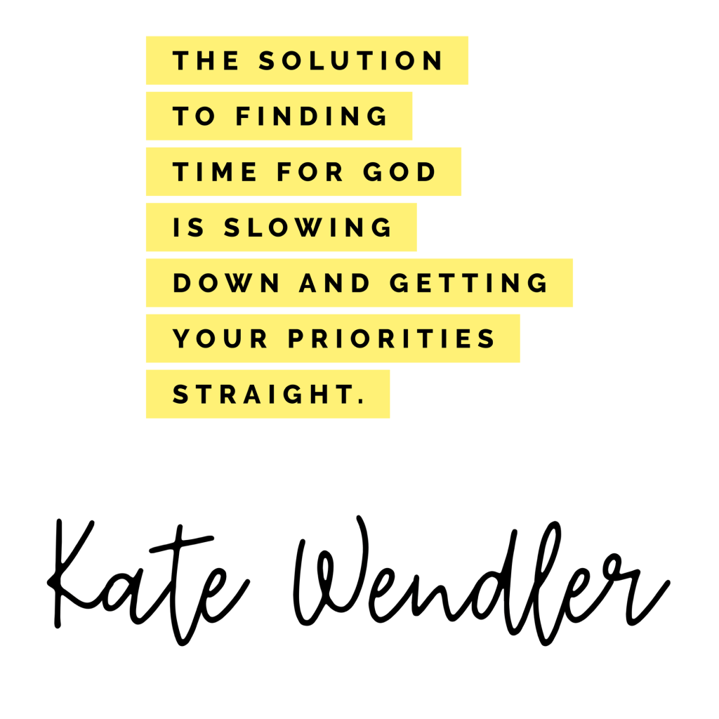 For me, I have time set aside at night to spend time with the Lord because I am a night person. The solution to finding time for God is slowing down and getting your priorities straight, and then aligning your schedule with your priorities.