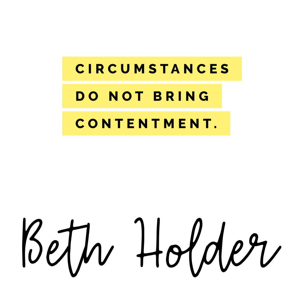I recently had the opportunity to revisit some of the most difficult times I’ve experienced in my life and how God worked through them. I realized that all along, God had been teaching me that circumstances do not bring contentment. I can feel comfortable and at peace with circumstances when I choose to put Christ above all else. It’s a choice I have to make on a daily basis. It includes living above the circumstances, trusting God to supply all of my needs, forgiving those who hurt me, looking up with confidence, and looking up with hope. Living content is a choice! It’s a choice to put Christ above all else.