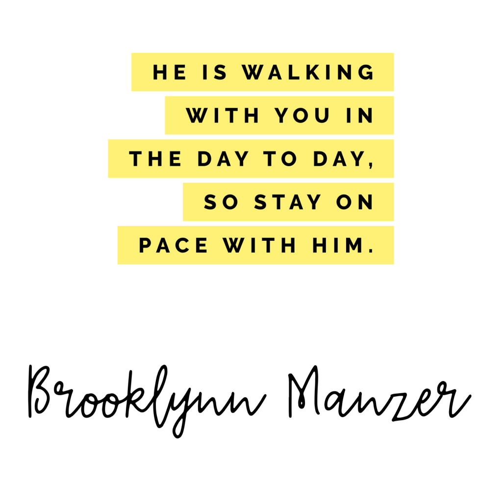 Maybe, if we all slow down, we will be able to notice the little things in our day to day that God is calling us to. He is always on time, He is never rushing, or running ahead. He is walking with you in the day to day, so stay on pace with Him.