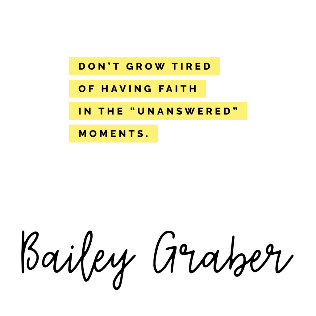 Don’t grow weary in doing good, don’t grow tired of having faith in the “unanswered” moments.