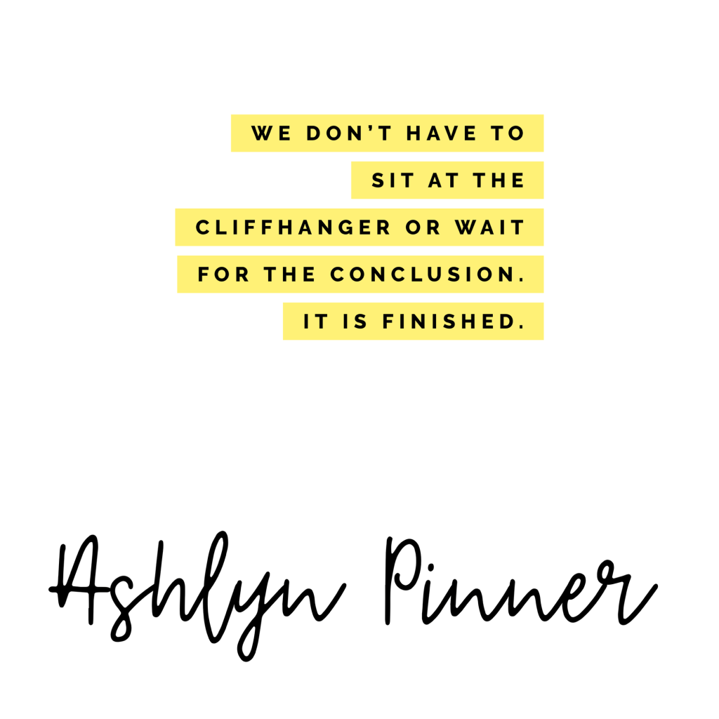 We don’t have to sit at the cliffhanger or wait for the conclusion. It is finished. He wrote our ending, beautifully, wonderfully, better than we could have ever imagined.
