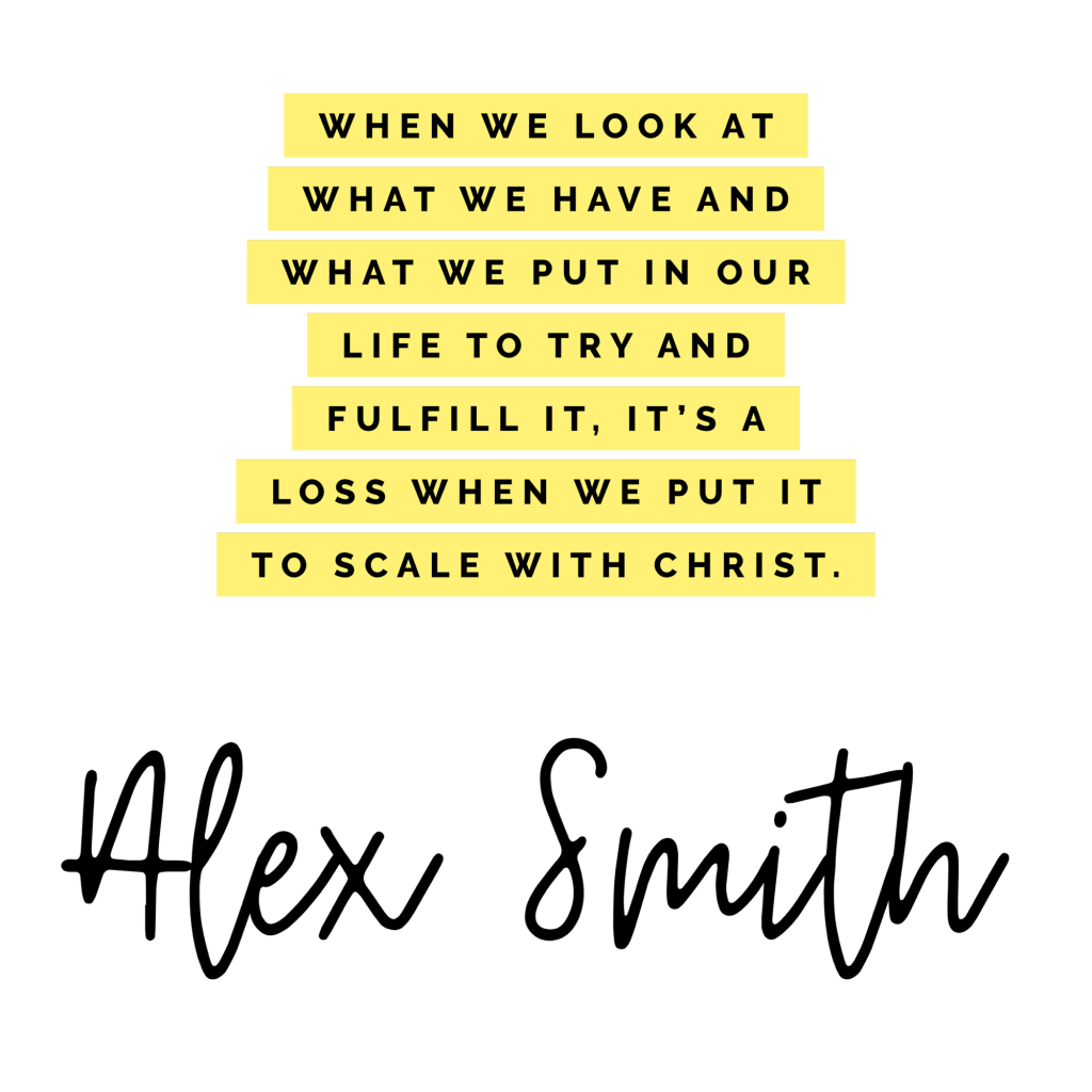 But he says “I count it all loss for the sake of knowing Christ” and he’s right. When we look at what we have and what we put in our life to try and fulfill it, it’s a loss when we put it to scale with Christ.
