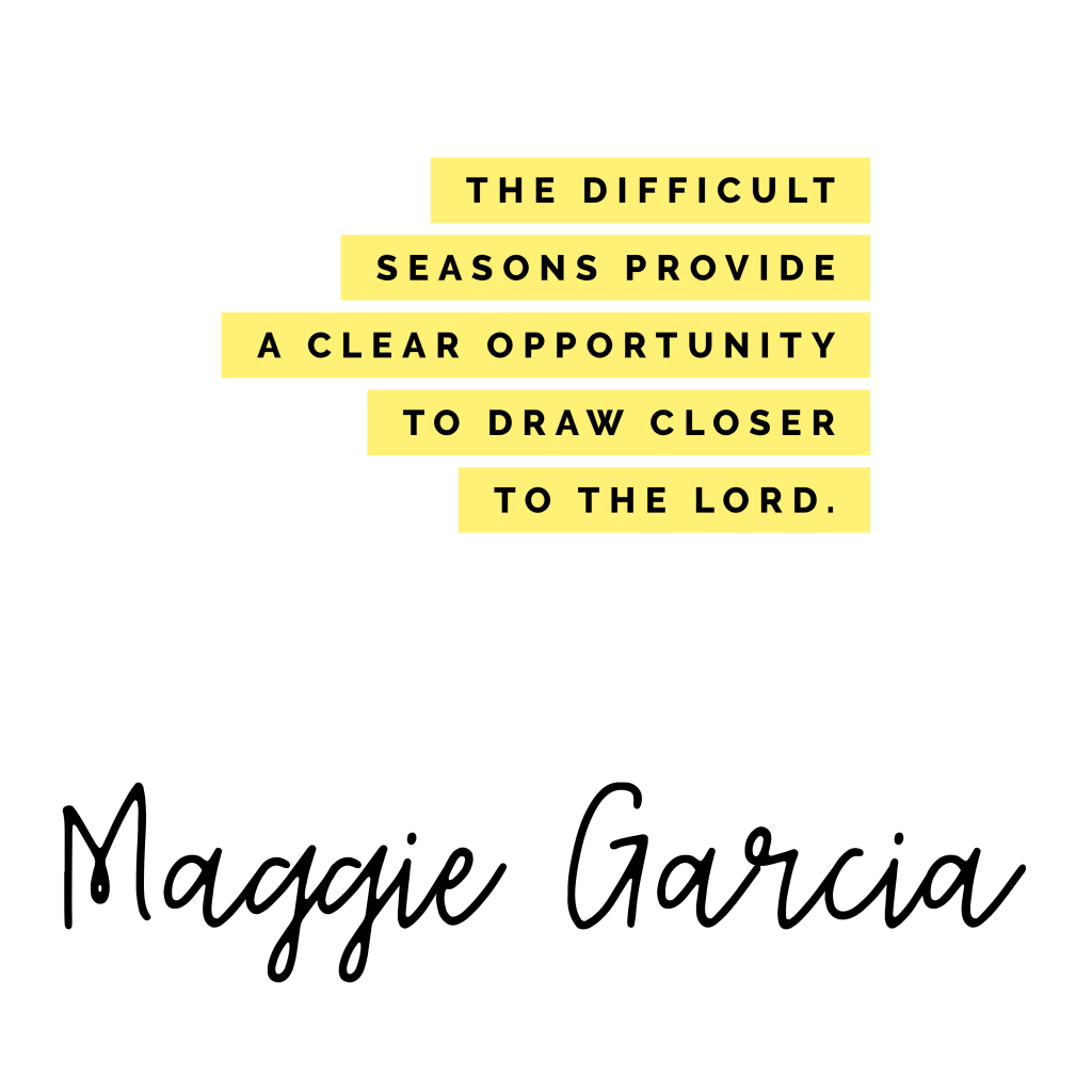 The difficult seasons provide a clear opportunity to draw closer to the Lord. I’ve found this to be true when I take the time to reflect on my life and what has shaped me as a Christian. Sometimes it takes a season of trial to produce an obvious need for the Lord. A need for the Lord can be found anywhere at any time. If you already follow Jesus, then the difficult seasons can produce fruits of the spirit and steadfastness of faith. We all need Jesus for our hard circumstances. I am thankful for a God that is present and faithful through all seasons of life.